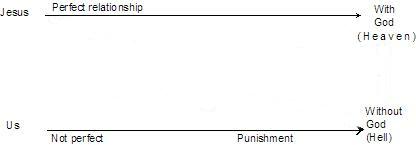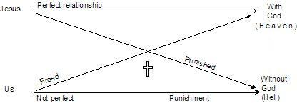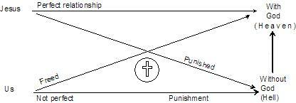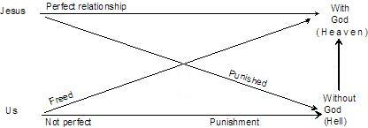 So we could have freedom from the punishment we deserve. What Jesus deserved was this (point to with God) but he chose this (point to Without God) for us.